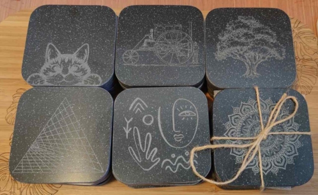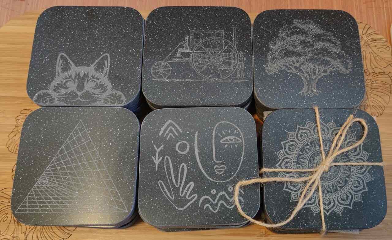 If you didn’t find what are you looking for, send us a message. We have a wide range of shapes and designs which could be laser engraved on bamboo and slate boards and coasters.